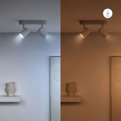4. Dim to warm: Door te dimmen wordt het licht warmer (geler). Hoe meer je dimt, hoe warmer de kleur.