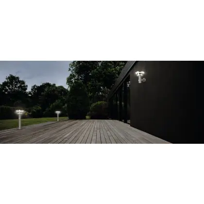 Beschrijving Ledvance LED Sokkel Lamp Endura Stijl Dubbel Circle Staal 6W 400lm - 830 Warm Wit | Solar - Bewegings- en Lichtsensor