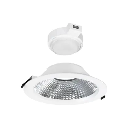 LED downlights kun je vergelijken met een inbouwspot, maar dan met een, over het algemeen, bredere stralingshoek. Downlight armaturen hebben een medium gradenbundel (25 - 40°), die perfect is voor ondersteunende verlichting, of een (zeer) brede gradenbundel (41 - >91°), die gebruikt wordt voor algemene verlichting. Deze 90° LED downlight van kun je in vele werkomgevingen en/of woningen gebruiken.
