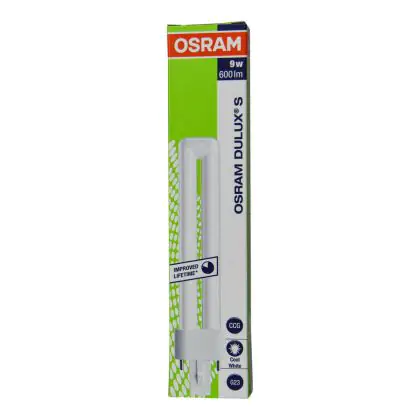 De Osram Dulux S is een korte en compacte lamp met steeklampvoet en enkelvoudig-gedraaide buizen. Ze hebben een G23-basis/voet met twee insteekvoetjes en twee-pins plug-in.