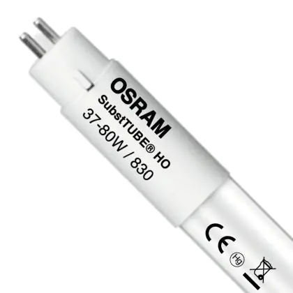 De Osram SubstiTUBE T5 LED TL lamp is een energie-efficiënte vervanger van conventionele TL lampen met een verbruik van 80W. Omdat het maar 37W verbruikt, kun je door deze LED TL lamp te gebruiken tot wel 54% energie besparen! Verder kenmerkt deze buis zich door zijn hoge lichtopbrengst van 5200 Lumen (HO) waarmee het goed gebruikt kan worden voor een hogere montagehoogte zoals in omgevingen met hoge plafonds.