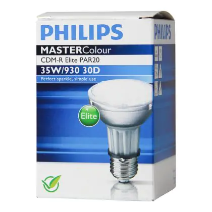 De Philips CDM-R Elite 35W 930 E27 PAR20 30D (MASTERColour) bestelt u tegen de scherpste prijzen bij Lampdirect! Neemt u ook eens een kijkje bij onze staffelkortingen voor nog meer korting! Heeft u vragen? Neem dan contact op met onze klantenservice!