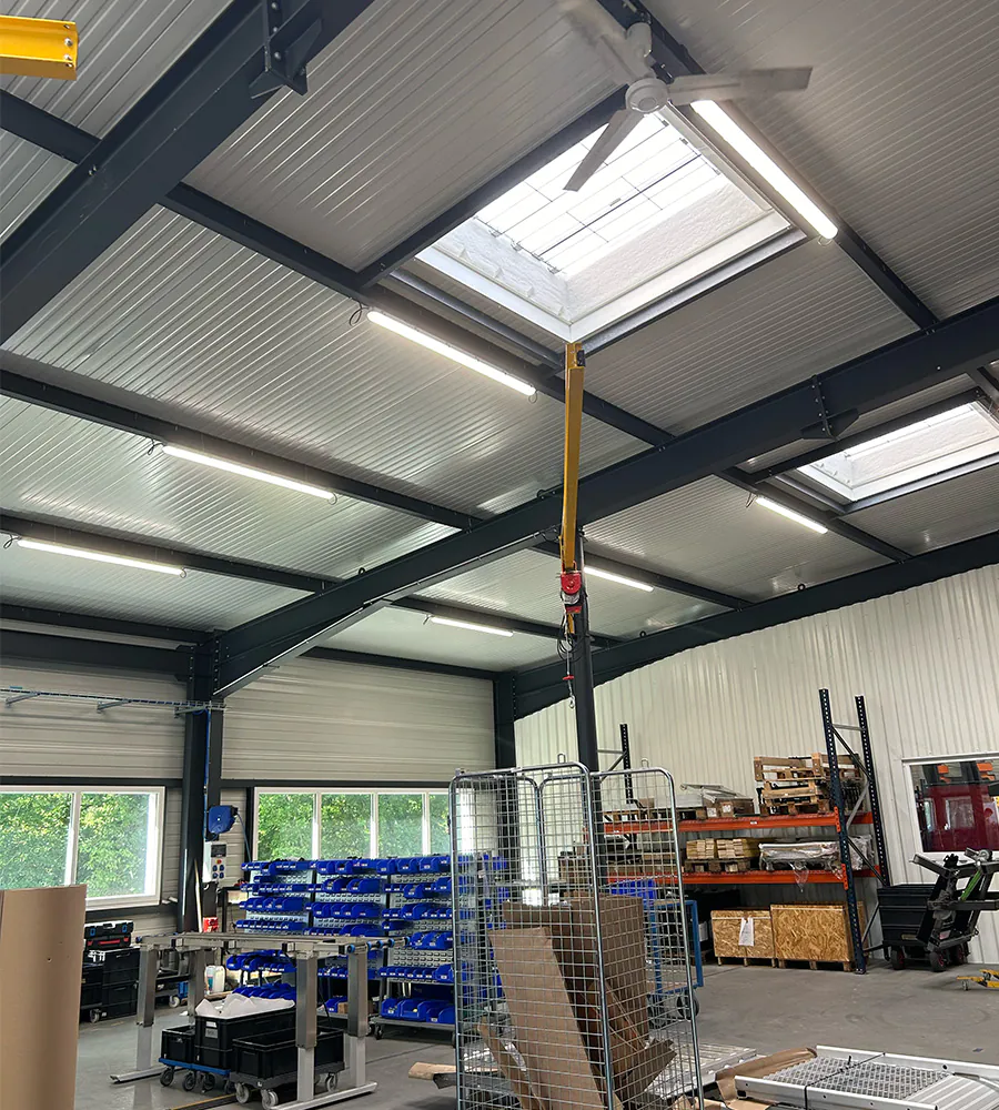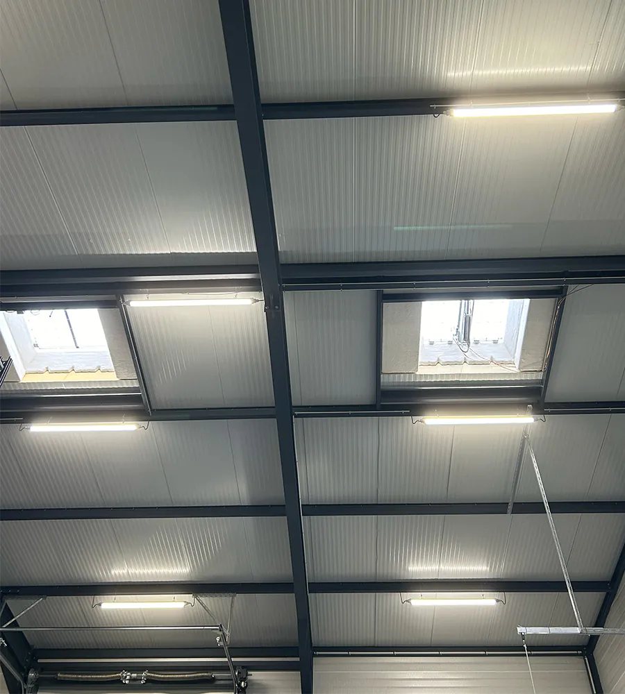 Onze projectadviseur stelde daarom een dubbele verlichtingsoplossing voor: krachtige LED verlichting voor de werkzones en meer diffuse verlichting voor de opslagruimtes.