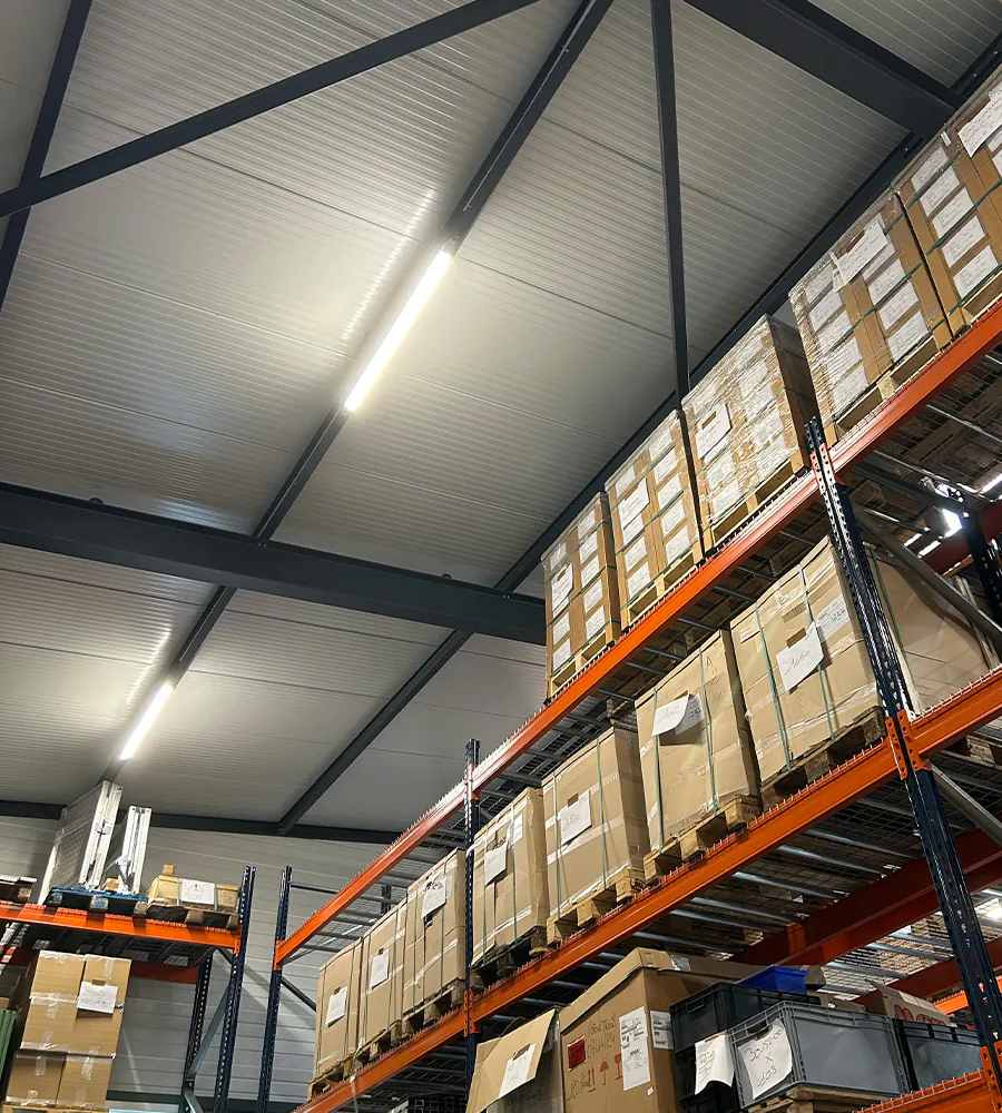 Er zijn Noxion Poseidon V3.0 waterdichte LED battens geïnstalleerd in het nieuw uitgebreide magazijngedeelte. Dit model is bij uitstek geschikt voor veeleisende professionele omgevingen zoals logistieke en opslagruimtes.